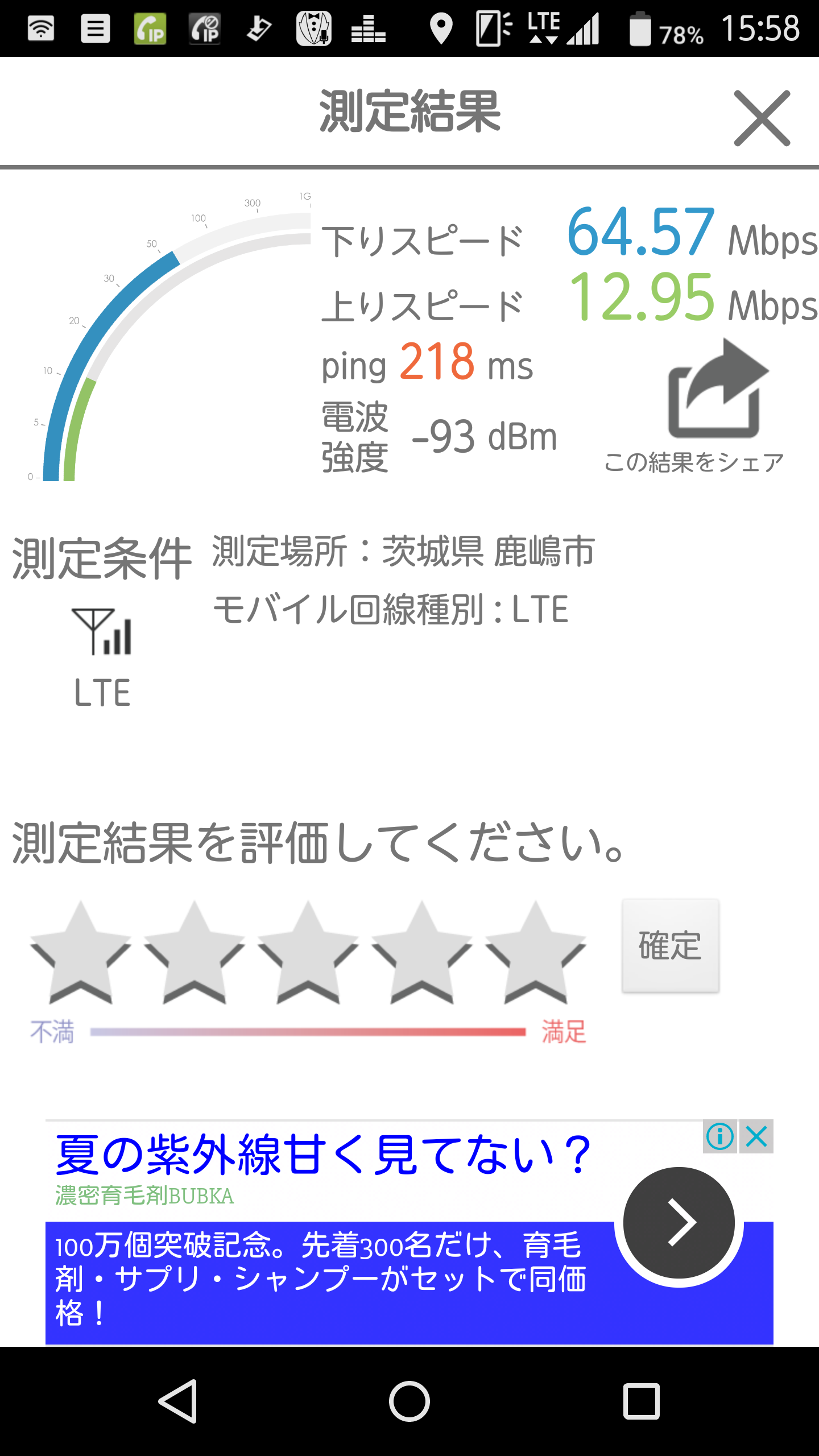 スピードテスト スマホ android